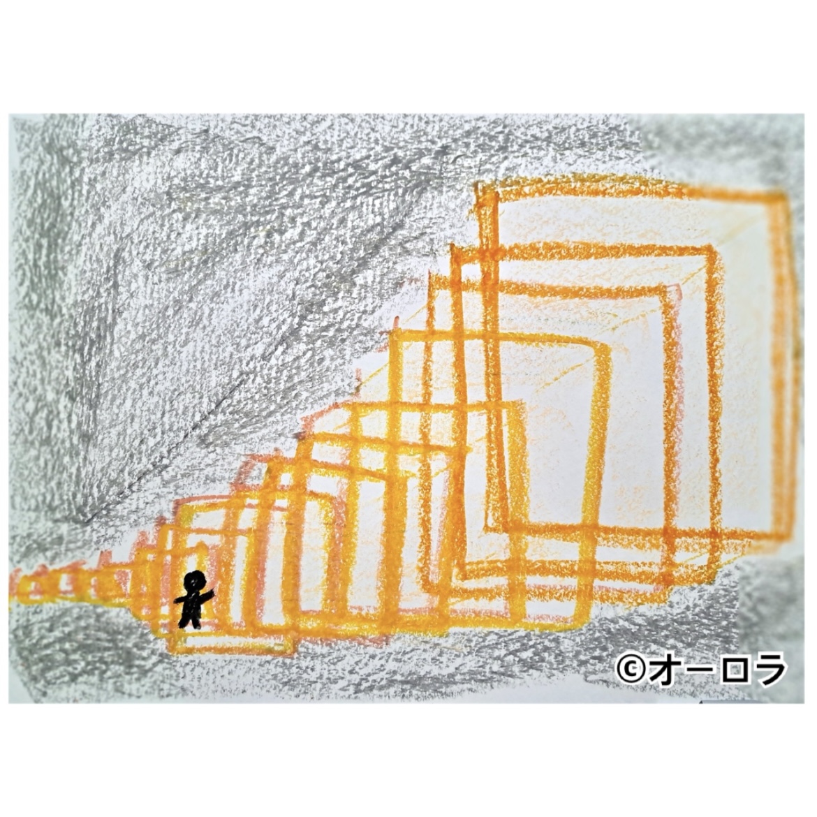 人は小さく描かれ、まるでゴマ粒のよう。不安で、道に迷っているようで、苦しいね。